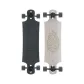 Dimensions bien équilibrées : 36,5″ (≈92,7 cm) de long, 10″ (≈25,4 cm) de large, avec une distance entre trucks (wheelbase) de 27,25″ (≈69,2 cm), offrant une bonne maniabilité sans sacrifier la stabilité.